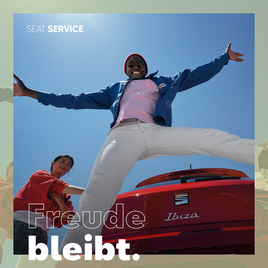 ¹ Den Rabatt in Höhe von 15 % auf den Umsatz mit ausgewählten SEAT Original Teilen® erhalten Privatkunden mit einem mindestens 4 Jahre alten SEAT Fahrzeug bei Wartungs- und Verschleißreparaturen (ohne Reifen) bis zum 30.06.2024. Der Abzug von bis zu 150 € (brutto) auf einen Umsatz von max. 1.000 € (brutto) erfolgt auf der Rechnung. Ausgenommen sind Flüssigkeiten wie Öl, Frostschutz, Werkstattkleinteile. Nicht mit anderen Rabattaktionen oder -angeboten kombinierbar. Nur 1x je Fahrgestellnummer im Aktionszeitraum nutzbar. Weitere Informationen bekommst du bei uns.